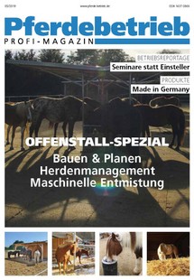 In der Ausgabe 05/2019 vom Pferdebetrieb geht es speziell um den Bau von Offenställen. Herr Fink führt die wichtigsten Punkte auf, die bei der Planung und Dimensioniereung der einzelnen Bereiche beachtet werden müssen. Den ganzen Artikel können Sie entweder im Pferdebetrieb lesen oder hier.